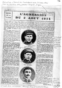 Article Heures de la guerre : l'agression du 2 aout 1914.