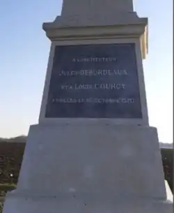 Dans la commune de Pasly, béni par l'abbé Devent le 21 juin 1872, le tout premier monument dédié à la mémoire de Jules Debordeaux et Louis Courcy a été érigé sur le plateau, surnommé la "montagne" par les habitants de la région, entre Pasly et Cuffies. Cette construction a été rendue possible grâce à une souscription lancée par le maire de Pasly. De plus la commune a nommée une rue Jules Debordeaux, qui la traverse de Sud-Ouest en Nord-Est. Elle fait intersection avec une rue Jean-Louis Courcy, en l'honneur de son compagnon.