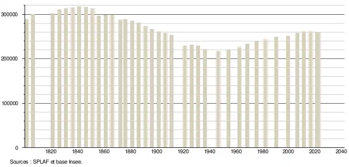En 2022, le département comptait 258 405 habitants[Note 2], en évolution de −0,81 % par rapport à 2016 (France hors Mayotte : +2,11 %).