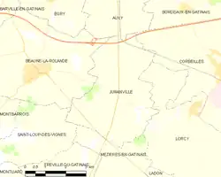 Carte de la commune de Juranville et des communes limitrophes.