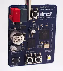 - "TP1" : hérité d'EIB, permettant un débit de 9 600 bit/s. la transmission est assurée par un codage BBS (Balanced Baseband Signal).