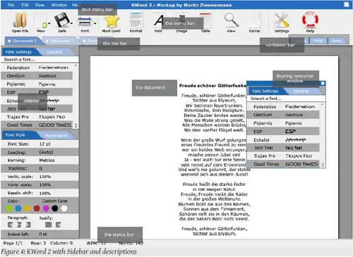 - Innover en matière d'ergonomie. Peu connu par rapport aux deux mastodontes plus complets et connus, KOffice ne pourra trouver son public que s'il simplifie la vie de ses utilisateurs, notamment pour les tâches simples et pour les grands documents. Le projet KOffice a donc organisé un concours qui s'est terminé début 2006[4], pour donner à KOffice 2.0 une interface singulière et pratique.