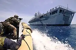 Le navire comprend un hôpital de 50 lits ainsi que des salles d'opération permettant d'assurer aux troupes un soutien de santé et éventuellement de traiter des populations civiles dans le cadre d'opérations humanitaires.