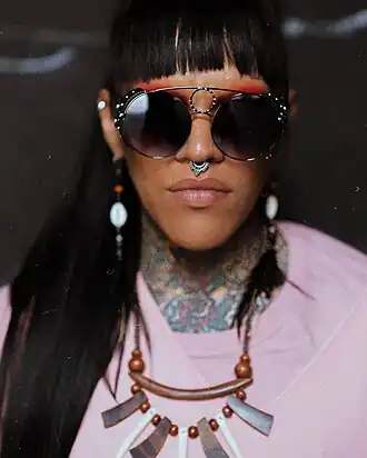 - ↑ (pt-BR) Aline Gouveia, « Rapper indígena critica 'ostentação' de ouro por artistas; entenda », sur Diversão e Arte, (consulté le )