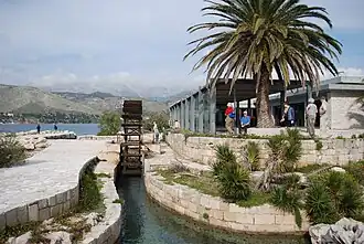 En 1835 le collecteur d'impôts anglais Stevenson est le premier à utiliser les katavóthres pour faire fonctionner un moulin à moudre le maïs, installant les aménagements décrits plus haut ici. En 1859, D. Migliaressi installe un autre moulin du même type à quelques centaines de mètres plus au sud. Ils cessent de travailler dans les années 1930, et sont totalement détruits lors du séisme de 1953 de Céphalonie. Au début des années 1960, ils sont reconstruits comme attraction touristique, mais ne sont pas fonctionnels[2].