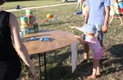 - La pêche aux canards: Le but est d'attraper un ou plusieurs objets flottants dans un petit bac ou petite piscine contenant de l'eau. Sous l'objet se trouve un numéro ou une couleur qui permet d'obtenir un ou plusieurs lots à échanger au stand des lots.