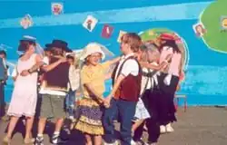 En France, depuis plusieurs générations[1], c'est généralement en fin d'année scolaire que les écoles clôturent le cycle éducatif annuel par une kermesse, fête qui fait participer les élèves, les professeurs, les parents volontaires, des élèves de l'établissement, l'association des parents d'élèves[2] ou caisse des écoles[3],[4]. Les dates définies dépendent généralement des évènements de la commune ou de l'actualité comme les Jeux olympiques d'été de 2024. La représentation se faisant en spectacle regroupant plusieurs écoles ou organisé individuellement par établissement scolaire, avec la mixité des enfants[5] ou garçons et filles séparés selon l'époque où les écoles. C'est aussi l'occasion de lier des liens entre enseignants, enfants et parents[6].