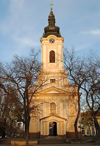 L'Église Saint-Nicolas, inscrite sur la liste des monuments culturels d'importance exceptionnelle de la Répbulique de Serbie[12], est située sur la place centrale de Kikinda ; elle a été construite dans la seconde moitié du XVIIIe siècle dans un style classique et abrite des peintures de Teodor Ilić Češljar.