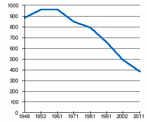 | 884 | 960 | 967 | 852 | 794 | 655 | 493[2] | 383[1] |