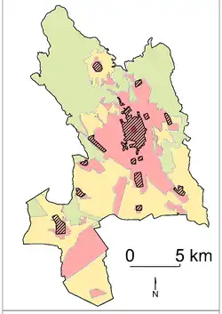 Le territoire de la ville est limité par 26 communes. Toutes ces communes sont des communes rurales et il n'y a pas de continuité du tissu urbain avec ces communes[11].