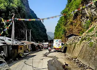 Elle est située sur l'autoroute Araniko (en référence au Newar Araniko), qui relie cette ville à Katmandou, la capitale du Népal. Le poste frontière la relie avec le poste chinois de Zhangmu, dans le xian de Nyalam, situé dans la ville-préfecture de Shigatsé, au sud de la Région autonome du Tibet. La route nationale chinoise 318 (ou G318) y prolonge la route Arankio jusqu'à Lhassa, capitale de la région autonome.