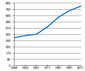 - 1 2 (sq) « Évolution de la population 1948-2011 », sur pop-stat.mashke.org (consulté le ).