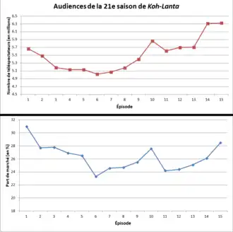 - ↑ Christophe Gazzano, « Audiences : La finale de "Koh-Lanta" net leader, "César Wagner" au top sur F2, le Téléthon en hausse sur F3 », sur ozap.com, (consulté le ).