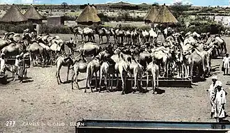 Carte postale représentant des chameaux à El-Obeid (1966)