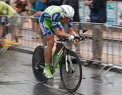Kristjan Koren à l'échauffement lors du prologue du Critérium du Dauphiné 2012.