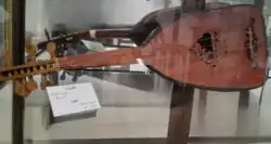 Il a quatre cordes doubles tendues sur un chevillier coudé à l'ancienne (avec des chevilles à friction). L'accord est embrassé (une corde accordée à l'octave en jouxte une autre). La caisse de résonance bombée rappelle celle du oud, mais elle n'a qu'une seule grande rosace centrale sur la table d'harmonie. La touche est lisse, sans frette.