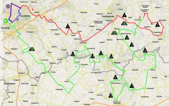 Le parcours passe par plusieurs monts des Ardennes flamandes, notamment le Vieux Quaremont et le Mont-de-l'Enclus, également empruntés par le Tour des Flandres.