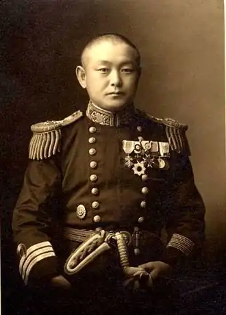Il trouve la mort lors de l'explosion du HMS Vanguard alors qu'il est, dans le cadre de l'alliance anglo-japonaise, observateur militaire à bord de ce navire britannique.