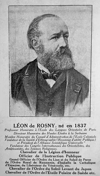 Léon de Rosny est aussi un "entrepreneur". Il crée des sociétés savantes[34], lance des revues, organise des congrès[35]. Dans sa recherche de sources et sa volonté de faire-savoir, il est décentralisateur en France et homme de réseau à l’international[36].