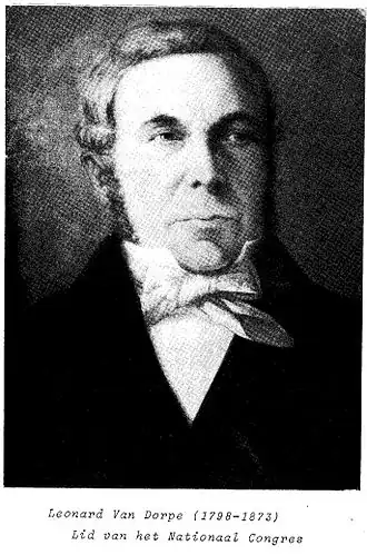 - (nl) Cet article est partiellement ou en totalité issu de l’article de Wikipédia en néerlandais intitulé « Leonard Van Dorpe » (voir la liste des auteurs).