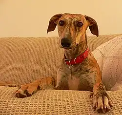 Un « Galguito » (levron espagnol), à la robe bringée.