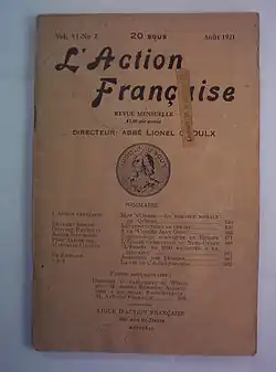 La pensée maurrassienne a été adoptée par des groupes d'intellectuels canadiens sensibles à cette référence pour intervenir dans des débats culturels, identitaires et politiques : L'Action française est un périodique puis le nom d'une ligue (1921-1927), soutenus par un groupe de défenseurs de la langue française et dirigés pendant dix ans par le prêtre Lionel Groulx qui est le théoricien : défense de la langue française, de la famille, de la ruralité[3]. La ligue défend l'idée d'un État pour les Canadiens français, protecteur contre les menaces de la modernité urbaine. Certains eurent des contacts personnels avec des dirigeants de L'Action française et retinrent de la pensée de Maurras l'hostilité à la démocratie et au parlementarisme, la distinction entre pays légal et réel et les conceptions esthétiques (génie latin, classicisme français)[3]. À la suite de la condamnation de l'Action française en 1926, le mouvement changera de nom et deviendra l'Action canadienne française[4].