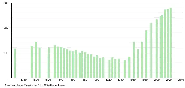 1 402 hab. (2022 en évolution de +0,21 % par rapport à 2016)