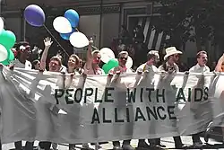Le sida a touché brutalement la communauté gay de San Francisco dès le tout début des années 1980[34],[35]. 15 548 hommes gays meurent du sida à San Francisco avant l'introduction des trithérapies dans la seconde moitié des années 1990[36]. Randy Shilts, qui décède lui-même du sida par la suite, est l'un des principaux journalistes à s'intéresser au sida[37]. Il est embauché comme correspondent national par le San Francisco Chronicle en 1981, devenant le premier journaliste gay à traiter d'un sujet « gay » dans la presse national[38]. En 1984, le militant bisexuel David Lourea (en) convainc le département de santé publique de San Francisco Department de reconnaître les hommes bisexuels dans les statistiques du sida, après deux ans d'efforts[24]. En 2011, le documentaire We Were Here couvre la crise du sida dans les 1980 et 1990 à San Francisco[36].