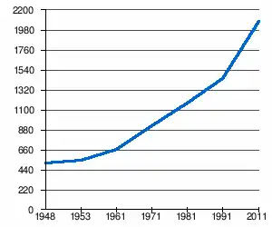 - 1 2 (sq) « Évolution de la population 1948-2011 », sur pop-stat.mashke.org (consulté le ).