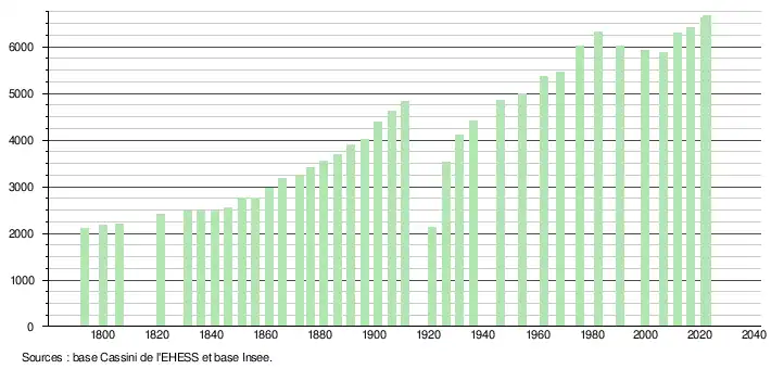 - ↑ Population municipale de référence en vigueur au 1er janvier 2025, millésimée 2022, définie dans les limites territoriales en vigueur au 1er janvier 2024, date de référence statistique : 1er janvier 2022.