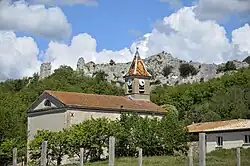 - Ruines du vieux village, démonté au XIXe siècle, après la nouvelle répartition de la propriété, pour être rebâti dans la plaine[23].