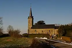 L'occupation des sols de la commune, telle qu'elle ressort de la base de données européenne d’occupation biophysique des sols Corine Land Cover (CLC), est marquée par l'importance des territoires agricoles (96,9 % en 2018), en diminution par rapport à 1990 (100 %). La répartition détaillée en 2018 est la suivante : prairies (58,2 %), terres arables (37,3 %), mines, décharges et chantiers (3,1 %), zones agricoles hétérogènes (1,4 %)[18]. L'évolution de l’occupation des sols de la commune et de ses infrastructures peut être observée sur les différentes représentations cartographiques du territoire : la carte de Cassini (XVIIIe siècle), la carte d'état-major (1820-1866) et les cartes ou photos aériennes de l'IGN pour la période actuelle (1950 à aujourd'hui)[Carte 2].