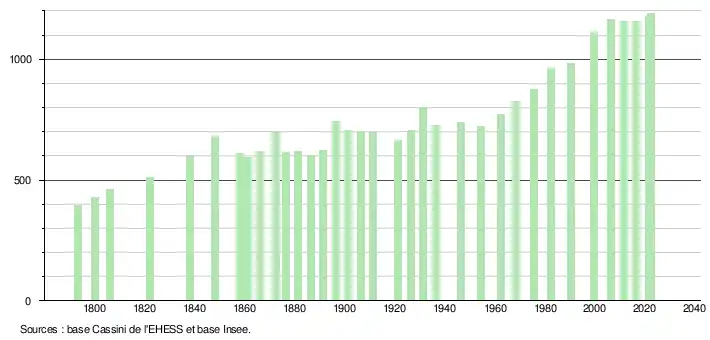 - ↑ Fiches Insee - Populations de référence de la commune pour les années 2006, 2007, 2008, 2009, 2010, 2011, 2012, 2013, 2014, 2015, 2016, 2017, 2018, 2019, 2020, 2021 et 2022.