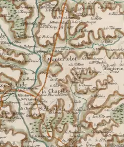 Carte de l'ancienne commune de La Chapelle-Caro et des communes avoisinantes.