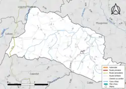 Le réseau hydorographique est constitué par le bassin de réception du Ruisseau de Lan Scalon : ce cours d'eau, affluent du Guic, lui-même affluent du Léguer, a sa source dans l'est de la commune, près de Ménez Houarnay, passe à l'est du bourg et, coulant vers le nord, quitte la commune près de Kernévez. Pratiquement toute la commune est drainée par divers affluents de rive gauche, mais de modeste importance, de ce cours d'eau : ils ont tous leur source dans la partie sud de la commune ou parfois un peu plus au sud, sur le territoire de Calanhel.