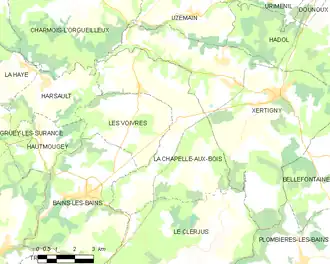 - ↑ « Orthodromie entre La Chapelle-aux-Bois et La Vôge-les-Bains », sur fr.distance.to (consulté le ).