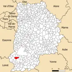 Elle se situe à 29,19 km par la route[Note 1] de Melun[4], préfecture du département et à 14,29 km de Fontainebleau[5], sous-préfecture. La commune est par ailleurs ville-centre du bassin de vie de La Chapelle-la-Reine[2].