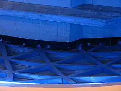 Encore plus à l'intérieur, et tout à fait indépendamment de la structure externe, se situe la structure abritant la salle de cinéma. Il s'agit d'une construction sphérique en béton armé de 6 000 tonnes, soutenue par un pilier central de 17 m de haut. Les sièges sont inclinés à 27°.