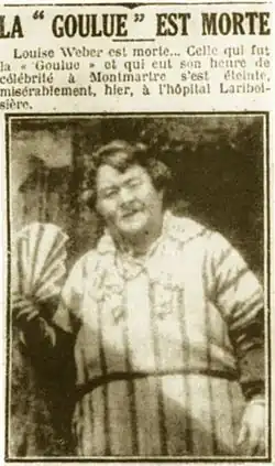 Louise Weber, dite La Goulue, née le à Clichy[2] et morte le à Paris 10e[3], est une danseuse de cancan populaire française.