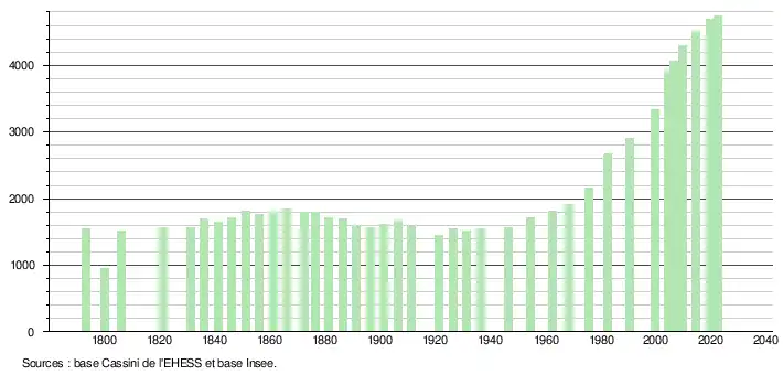 - ↑ Fiches Insee - Populations de référence de la commune pour les années 2006, 2007, 2008, 2009, 2010, 2011, 2012, 2013, 2014, 2015, 2016, 2017, 2018, 2019, 2020, 2021 et 2022.