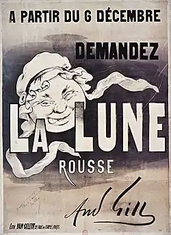 La Lune rousse est lancée le 10 décembre 1876. Les caricatures dessinées par Gill y sont initialement publiées en première page, comme dans l'ancienne formule de L’Éclipse, avant d'occuper toute la largeur de la double page centrale dès le 11 février 1877.