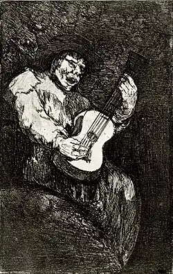 le chispero, le mendiant aveugle et la jeune femme vêtue à la façon des majas.