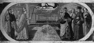 Il a été aussi envisagé que l'œuvre fasse partie de la prédelle de la Madonna di Piazza de l'atelier d'Andrea del Verrocchio.