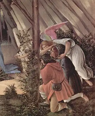 - ↑ John Ruskin a contribué à donner à la peinture son nom après avoir vu le tableau à Londres il a mentionné « Le symbolisme mystique » de Botticelli.
