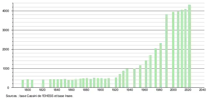 - ↑ Fiches Insee - Populations de référence de la commune pour les années 2006, 2007, 2008, 2009, 2010, 2011, 2012, 2013, 2014, 2015, 2016, 2017, 2018, 2019, 2020, 2021 et 2022.