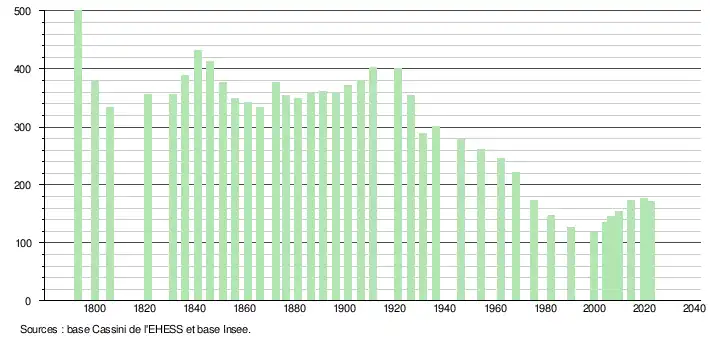 (Sources : Ldh/EHESS/Cassini jusqu'en 1999[16] puis Insee à partir de 2006[17].)