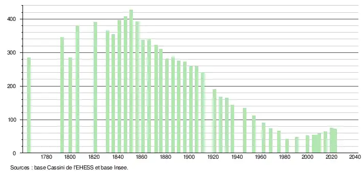 - 1 2 3 Christiane Vidal, « Chronologie et rythmes du dépeuplement dans le département des Alpes-de-Haute-Provence depuis le début du XIXe siècle. », Provence historique, tome 21, no 85, 1971, p. 289.
