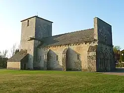 L'église paroissiale Saint-Sébastien est romane. Construite en 1180, elle a remplacé un premier édifice charpenté du XIe siècle. Son architecture est simple : nef unique, faux carré du transept et abside semi-circulaire. Sa façade comporte un portail central à trois voussures nues et deux arcades latérales abritant chacune un petit tympan sculpté[48]. Le toit, récemment restauré, est couvert de lauzes, dallettes calcaires caractéristiques des environs. Elle est classée monument historique depuis 1932[49].