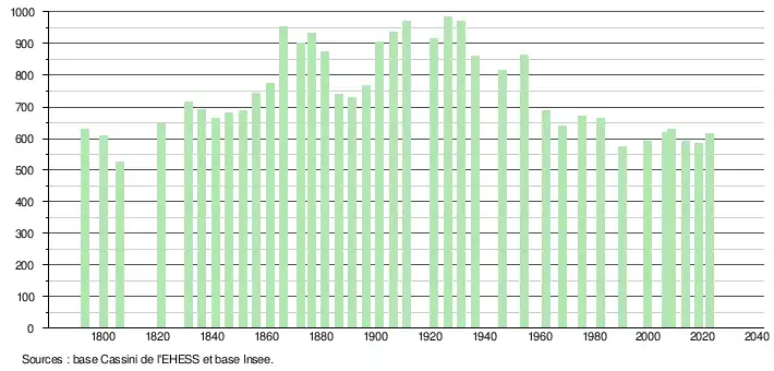 (Sources : Ldh/EHESS/Cassini jusqu'en 1999[17] puis Insee à partir de 2006[18].)