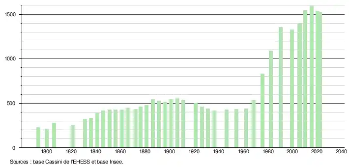 - ↑ Fiches Insee - Populations de référence de la commune pour les années 2006, 2007, 2008, 2009, 2010, 2011, 2012, 2013, 2014, 2015, 2016, 2017, 2018, 2019, 2020, 2021 et 2022.